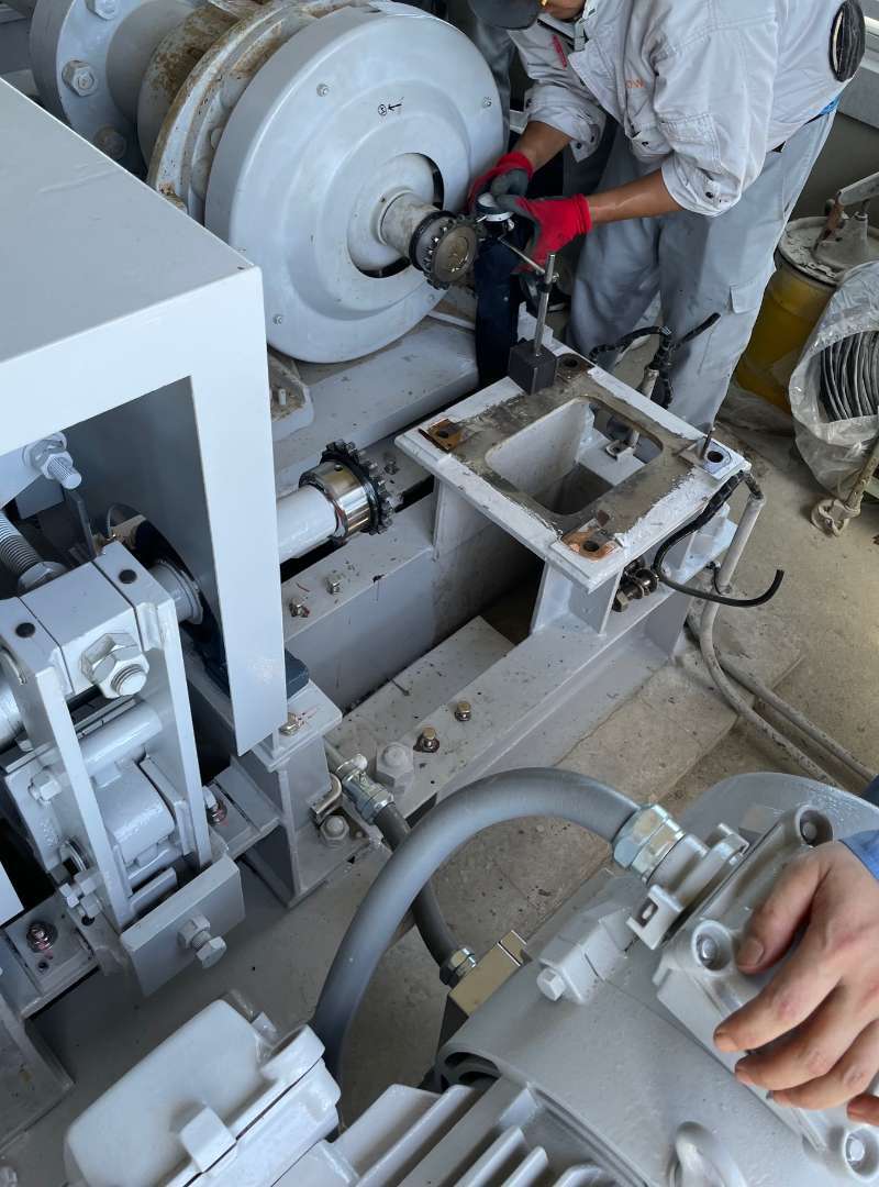 稼働の経年によって生じた微細な軸ズレを、精密な測定と調整により修正。装置の回転中心を正確に合わせ直すことで、安定した巻き上げ動作と装置の長寿命化が期待されます。